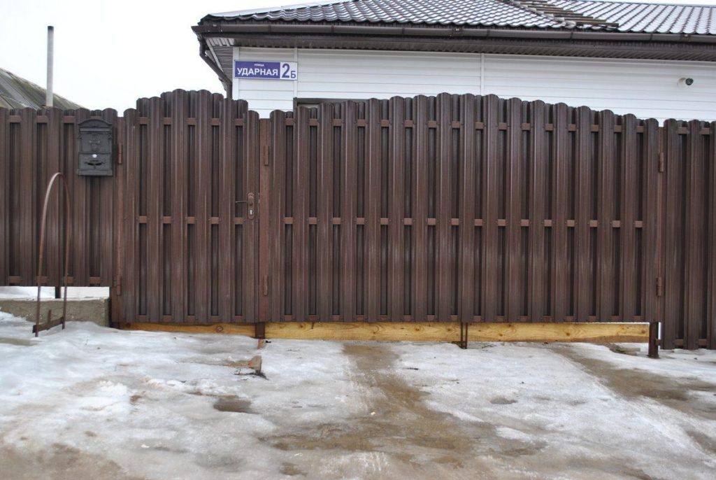 Ворота из евроштакетника распашные пример 6